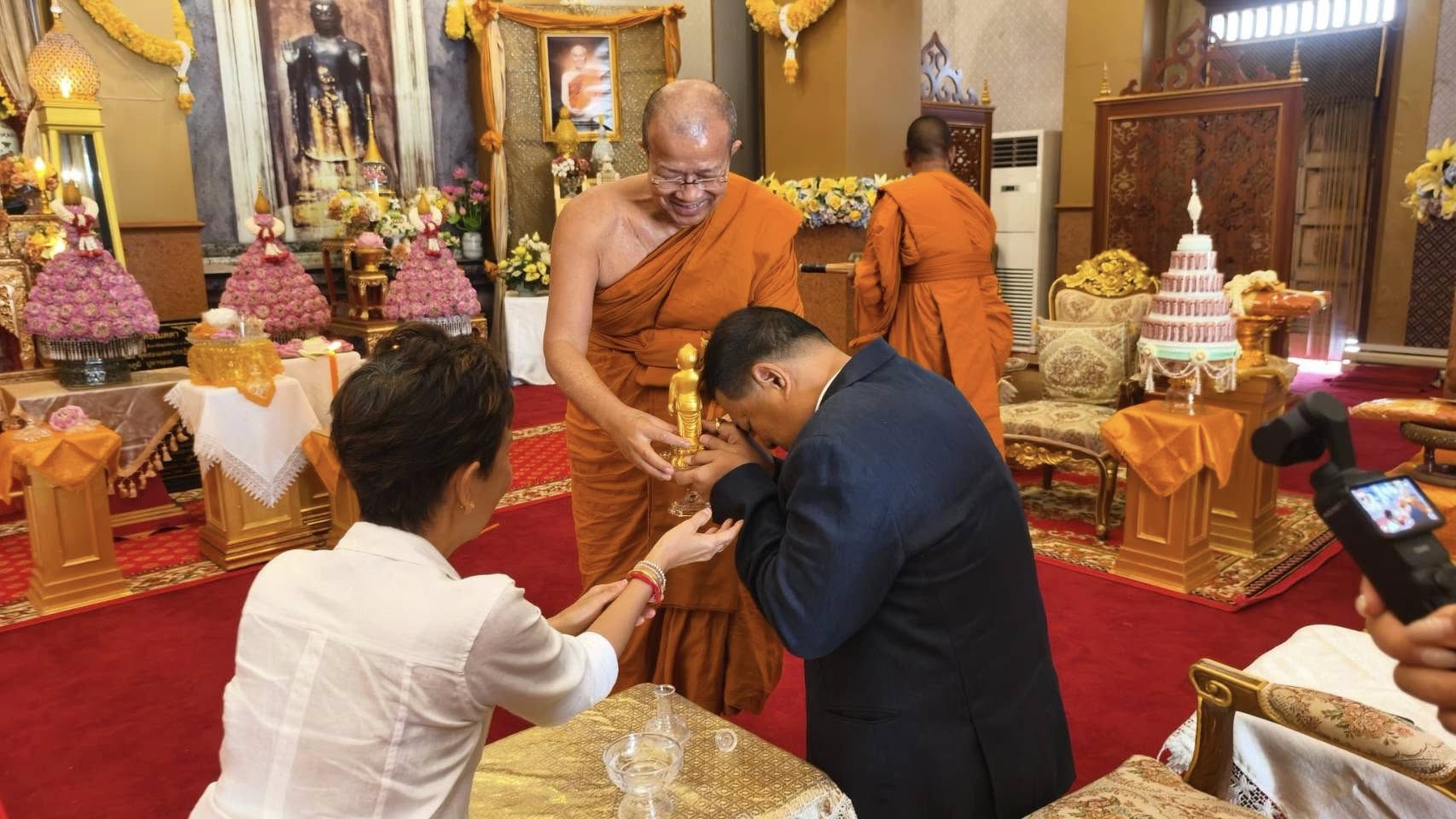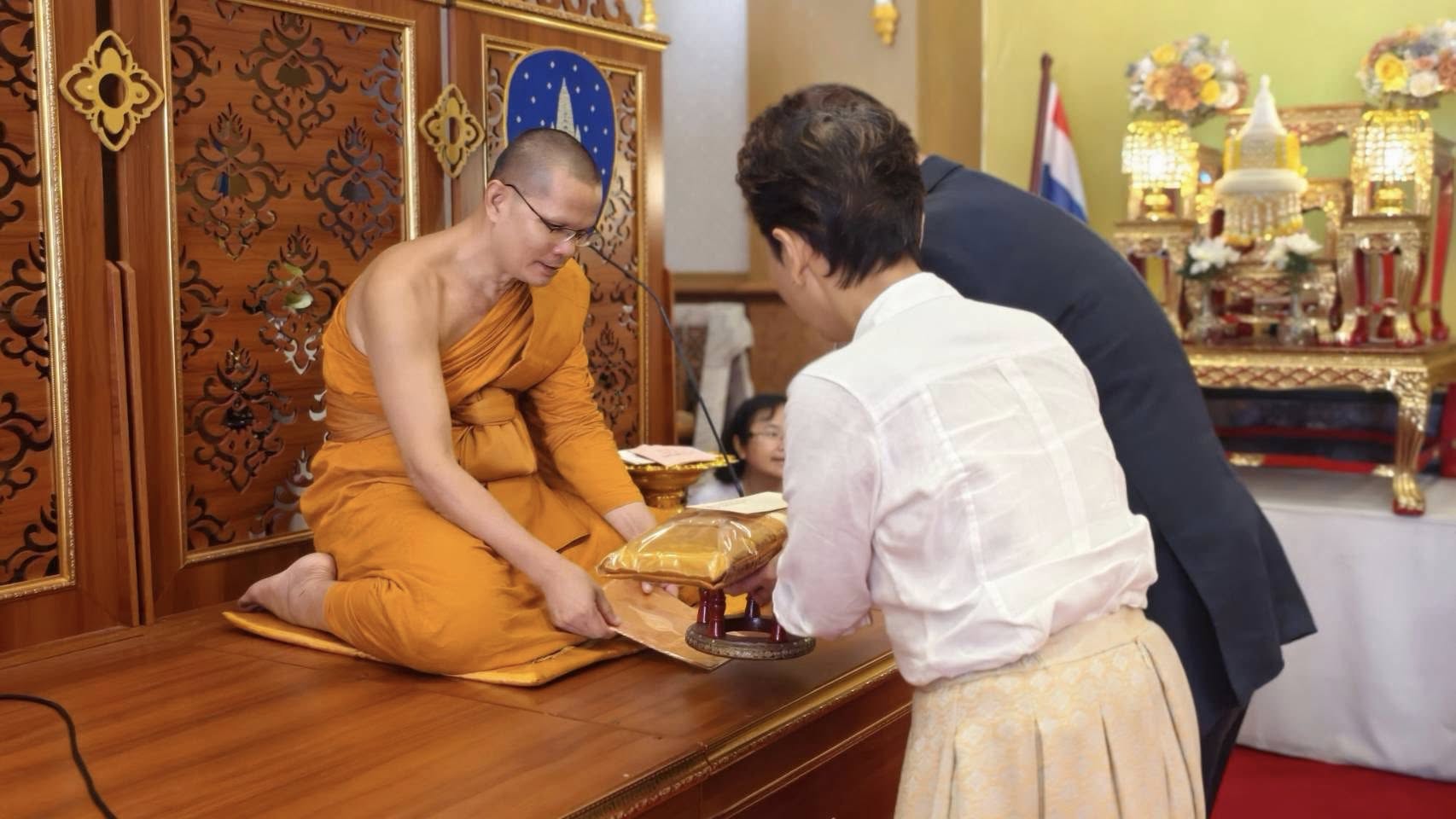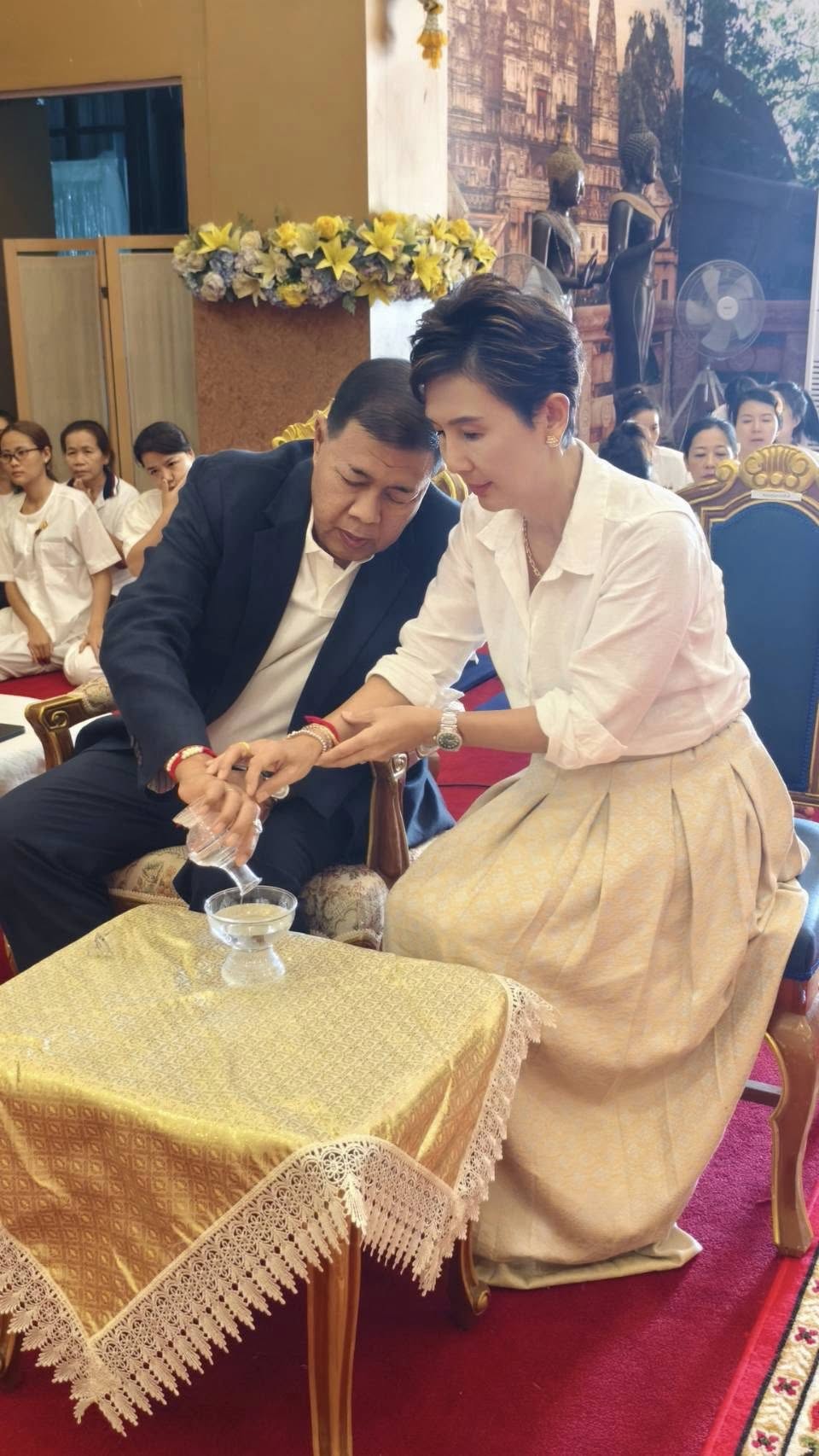 ที่ปรึกษาของรัฐมนตรีว่าการกระทรวงการต่างประเทศ และภริยา ประกอบพิธีถวายข้าวมธุปายาสแด่องค์พระพุทธเมตตา ณ วัดสุวรรณภูมิพุทธชยันตี