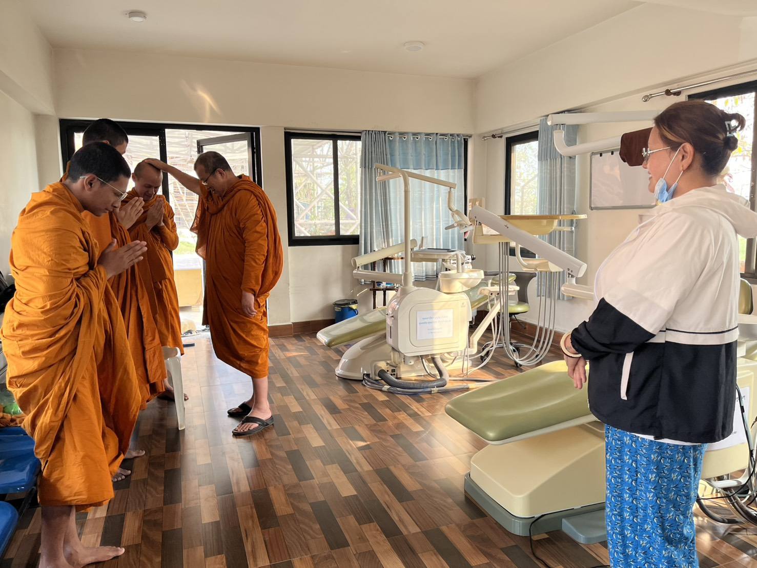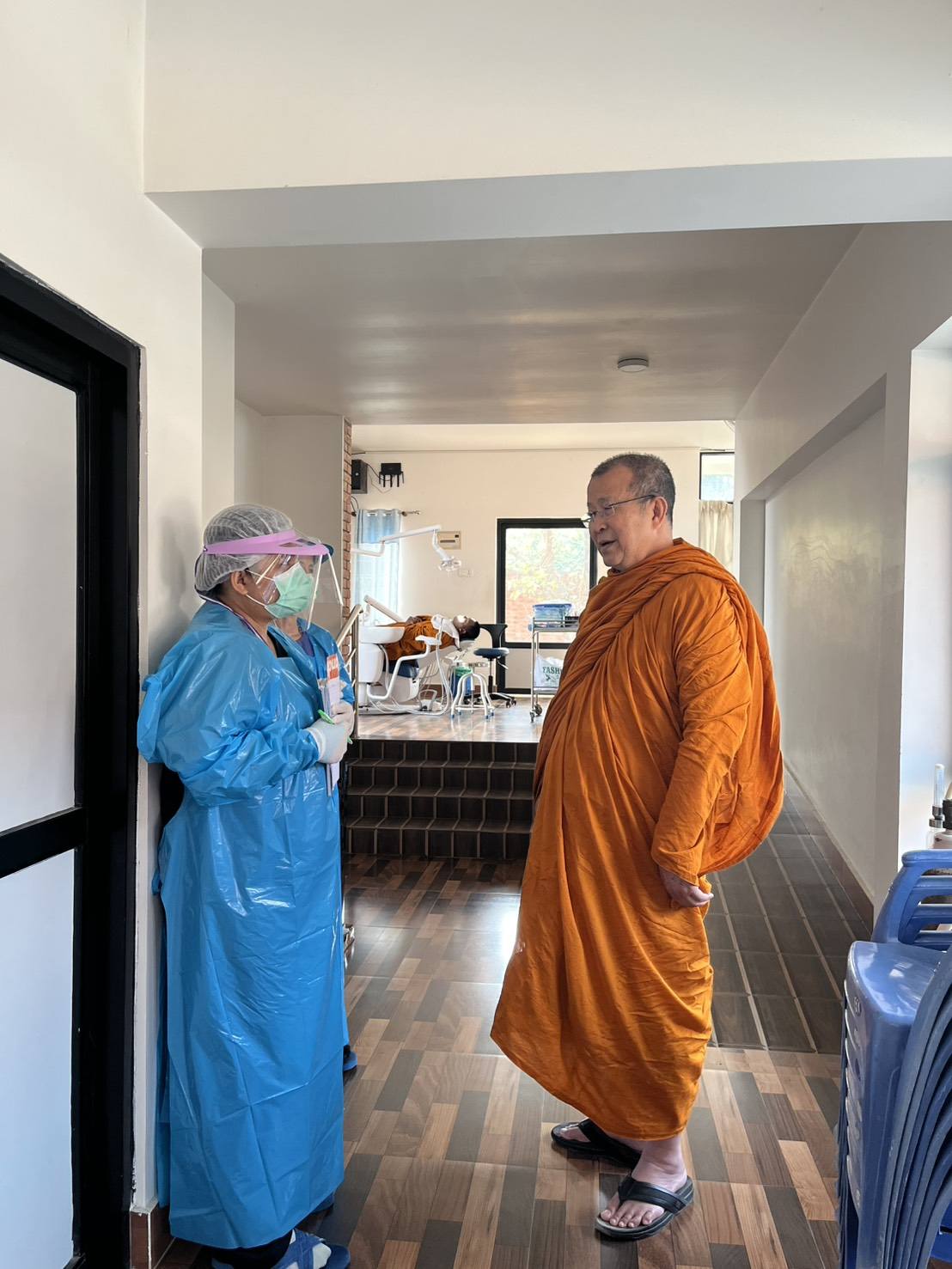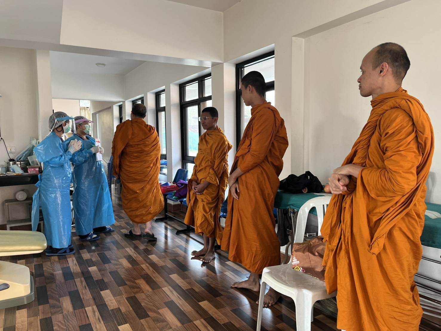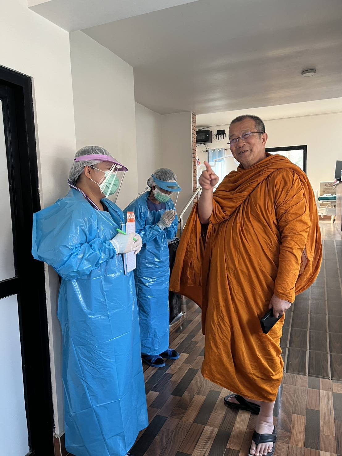 พระพรหมวชิรโพธิวงศ์ ตรวจเยี่ยมให้กำลังใจบุคลากรในคลินิคพระพุทธเจ้า วัดไทยลุมพินี