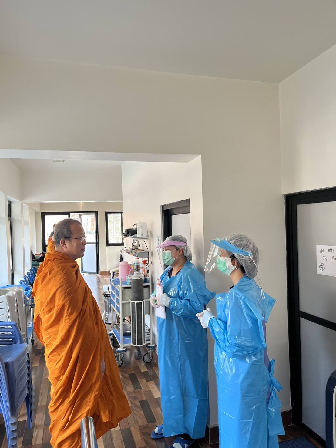 พระพรหมวชิรโพธิวงศ์ (วีรยุทธ์ วีรยุทฺโธ Ph.D.) เจ้าอาวาสวัดไทยพุทธคยา - อินเดียหัวหน้าพระธรรมทูต สายประเทศอินเดีย - เนปาล เมตตาเยี่ยมเยียนให้กำลังใจเจ้าหน้าที่ ที่ปฏิบัติหน้าที่ทางการแพทย์ ณ คลินิคพระพุทธเจ้า วัดไทยลุมพินี ประเทศเนปาล