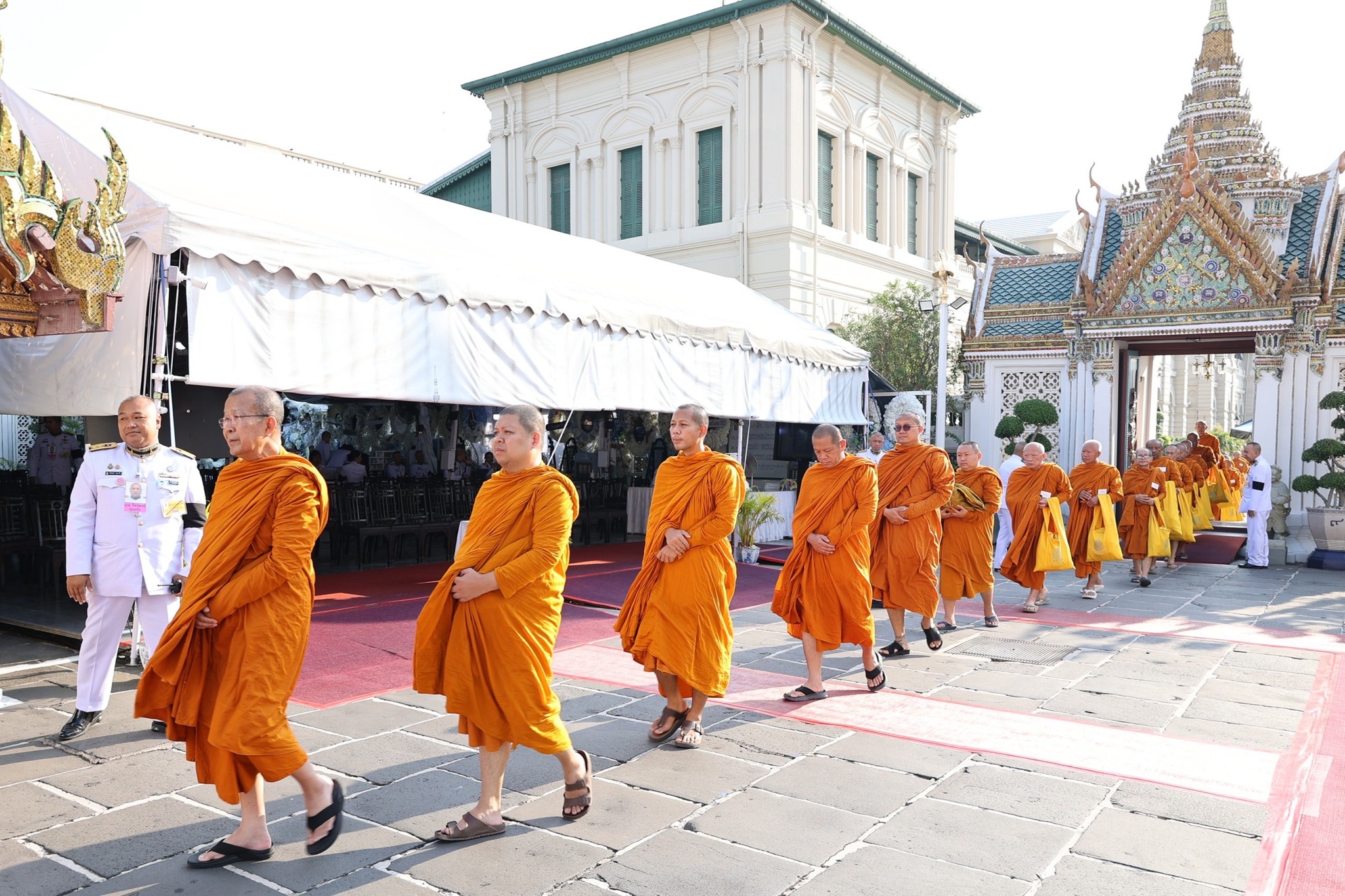 ทั้งนี้ พระสงฆ์ทั้ง ๙๓ รูป ได้บรรพชา ณ ปริมณฑลใต้ต้นพระศรีมหาโพธิ์ เมืองคยา รัฐพิหาร สถานที่ตรัสรู้ของพระสัมมาสัมพุทธเจ้า และอุปสมบท ณ วัดไทยพุทธคยา สาธารณรัฐอินเดีย จากนั้นได้เดินทางไปในพุทธสังเวชนียสถาน ๔ ตำบล ระหว่างวันที่ ๔ – ๑๔ มีนาคม ณ สาธารณรัฐอินเดียและสหพันธ์สาธารณรัฐประชาธิปไตยเนปาล เพื่อให้ผู้อุปสมบทได้แสดงความจงรักภักดี สำนึกในพระมหากรุณาธิคุณ และปฏิบัติธรรมถวายเป็นพระราชกุศล อีกทั้ง ยังได้ศึกษาเรียนรู้หลักธรรมคำสอนทางพระพุทธศาสนา และยังเป็นการสืบทอดพระพุทธศาสนาให้คงอยู่สืบไป