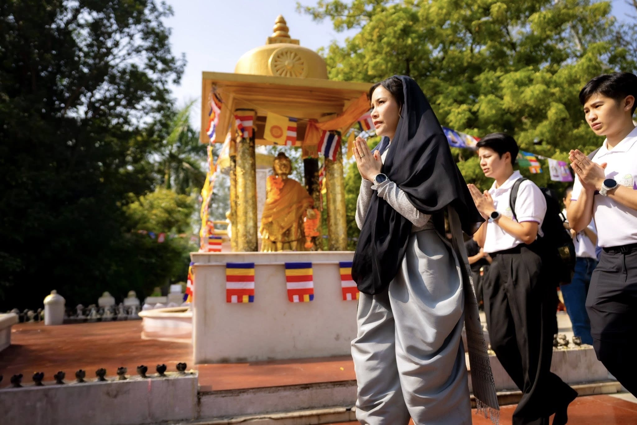 พระพรหมวชิรโพธิวงศ์ เจ้าอาวาสวัดไทยพุทธคยา หัวหน้าพระธรรมทูต สายประเทศอินเดีย - เนปาล เมตตานำ พลโทหญิง เจ้าคุณพระสินีนาถ พิลาสกัลยาณี กราบสักการะวัดพระเวฬุวันมหาวิหาร เมืองราชคฤห์ วัดแห่งแรกในพระพุทธศาสนา ในโอกาสที่พระบาทสมเด็จพระเจ้าอยู่หัว
