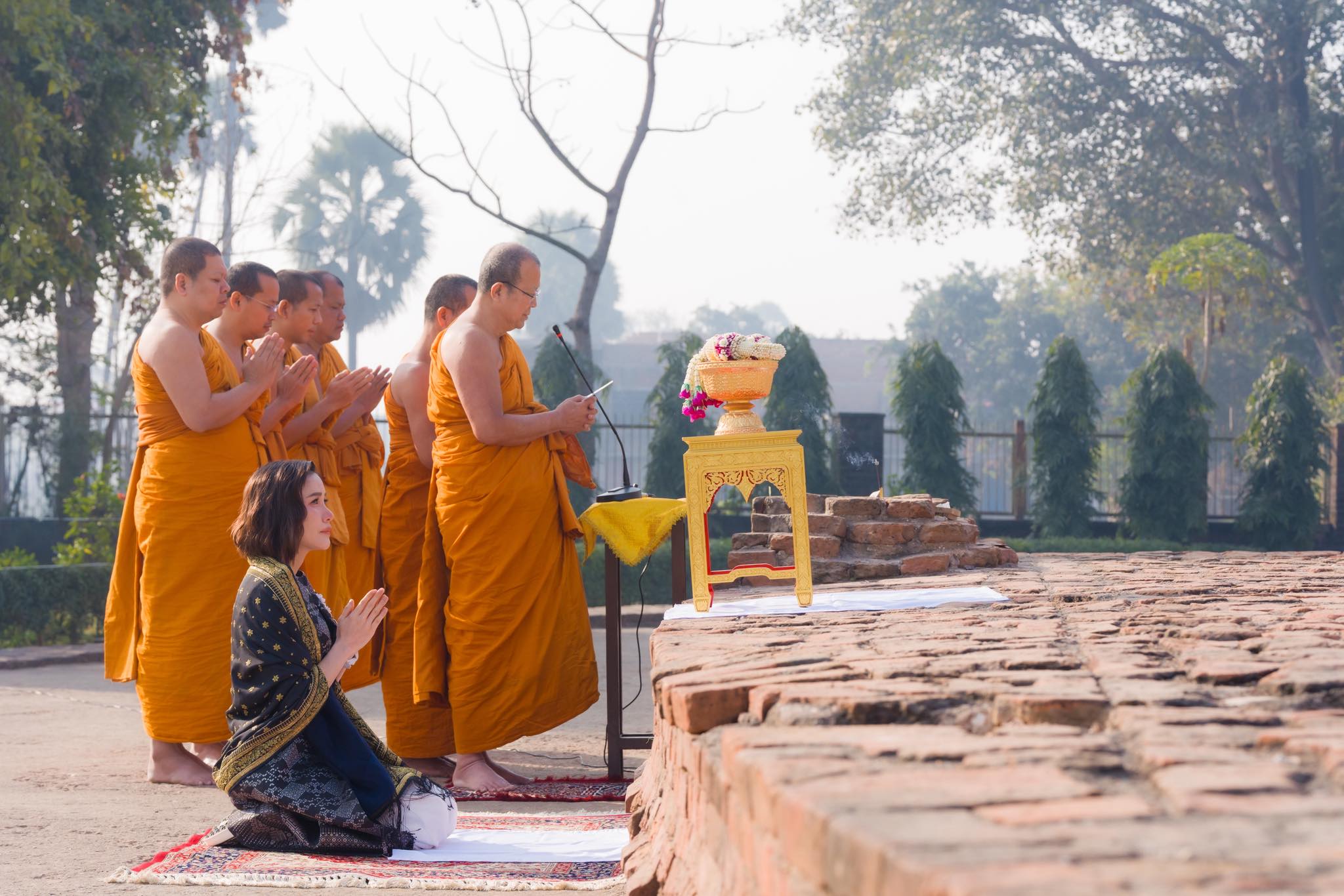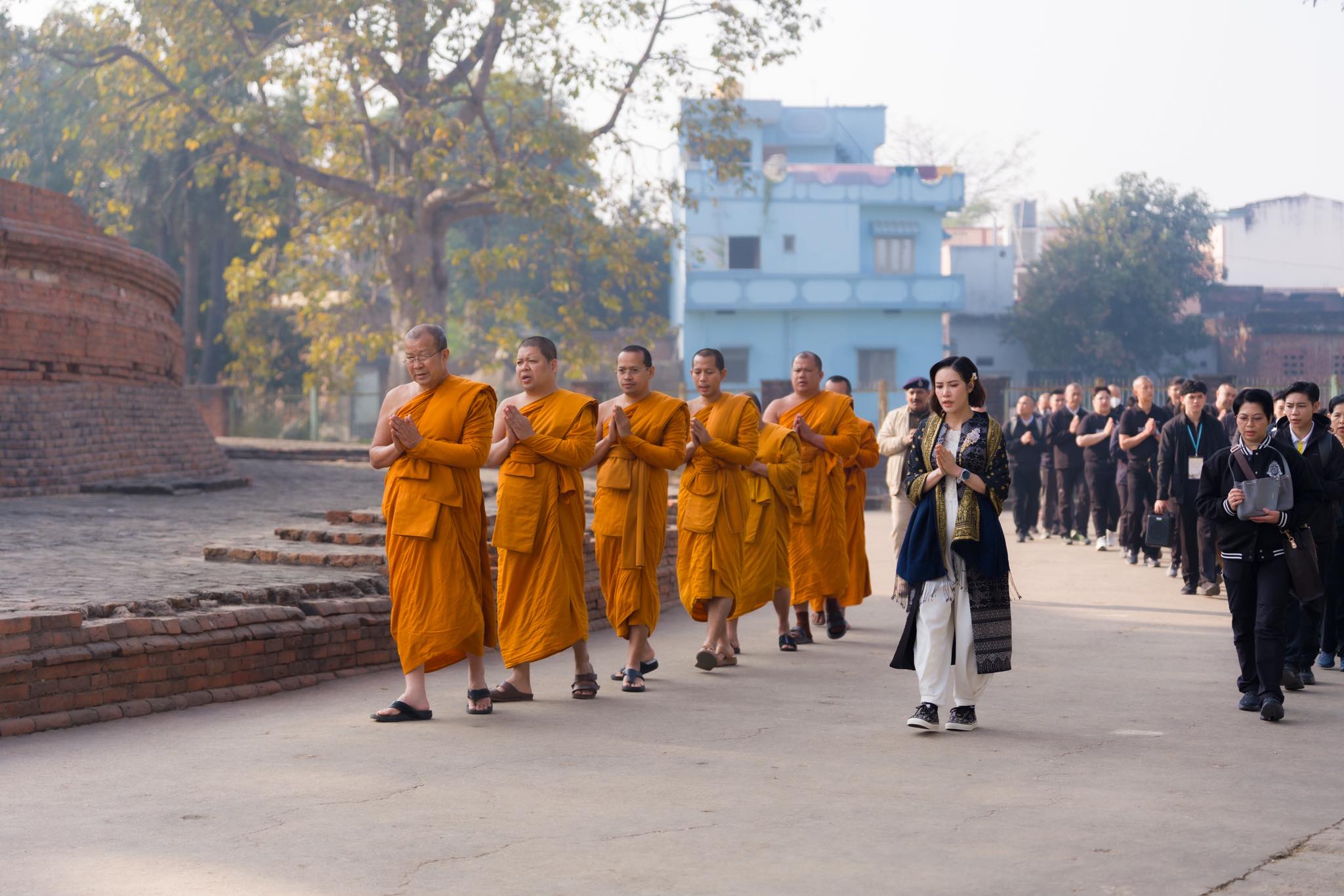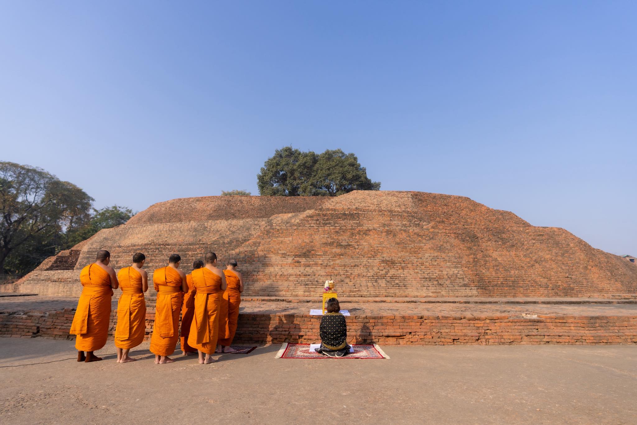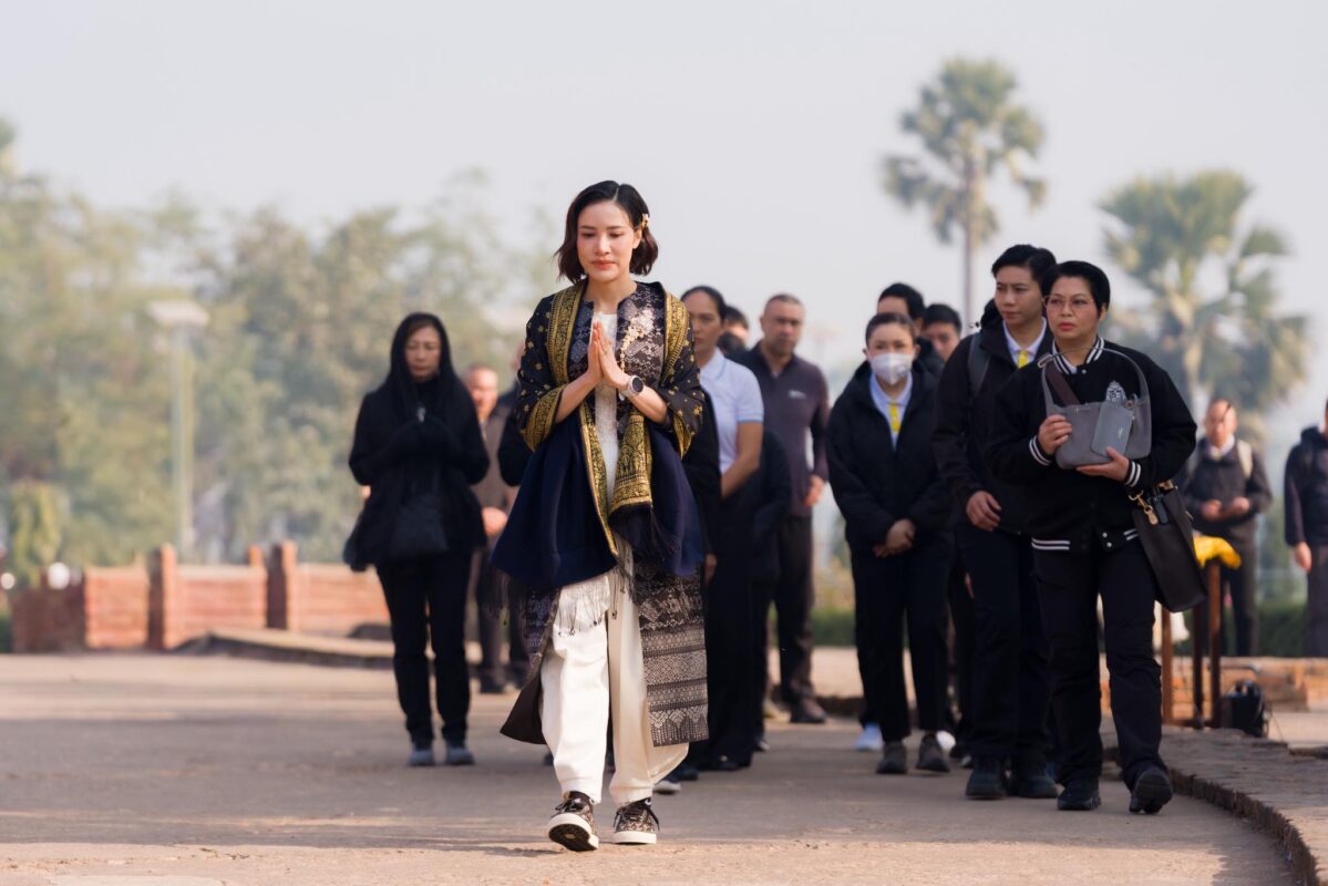 พระพรหมวชิรโพธิวงศ์ เจ้าอาวาสวัดไทยพุทธคยา หัวหน้าพระธรรมทูต สายประเทศอินเดีย – เนปาล นำพลโทหญิงเจ้าคุณพระสินีนาถพิลาสกัลยาณี กราบสักการะสถูปบ้านนางสุชาดา