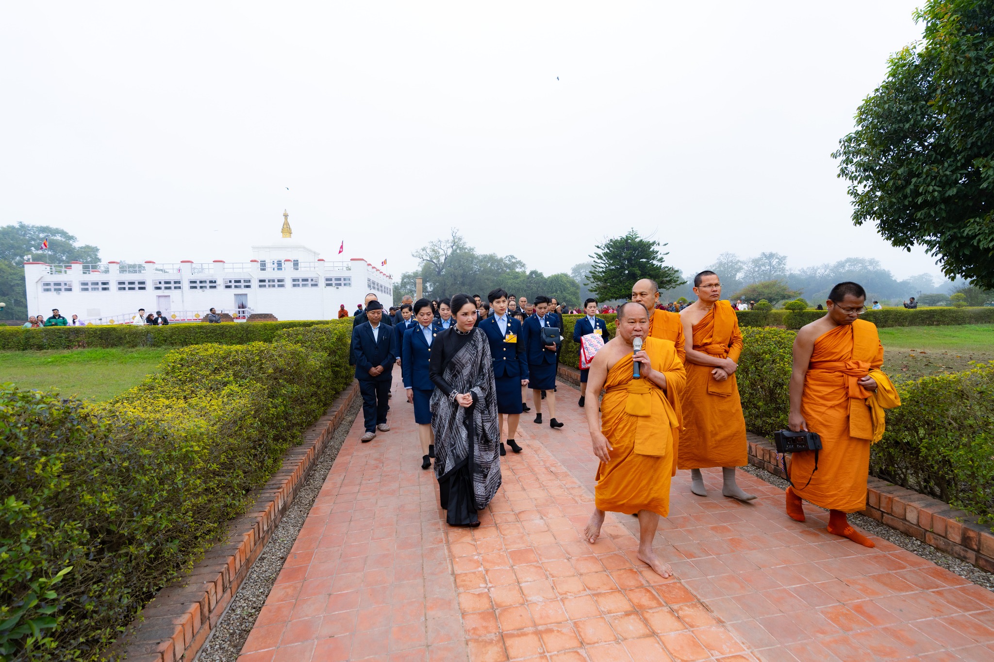 พลโทหญิงเจ้าคุณพระสินีนาถ พิลาสกัลยาณี เดินทางไปกราบสักการะมายาเทวีวิหาร ณ อุทยานสวนลุมพินีวัน สถานที่ประสูติขององค์สมเด็จพระสัมมาสัมพุทธเจ้า