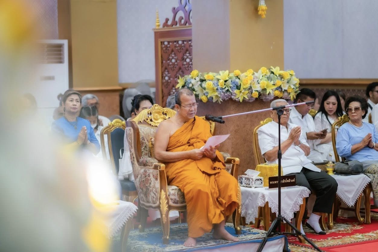 โดยมี ดร.ไพลิน เทียนสุวรรณ ที่ปรึกษารัฐมนตรีว่าการกระทรวงอุตสาหกรรม เป็นประธานฝ่ายฆราวาส คุณธัชพงศ์ วงศ์วัชรภัทร์ ประธานบริหาร ของบริษัท เดอะ วินเนอร์ สตาร์ กล่าวถวายรายงาน พร้อมด้วย พลเอกกนิษฐ์ ชาญปรีชญา อดีตสมาชิกวุฒิสภา ศ.ดร. เจริญ – อาจารย์มารยาท กระบวนรัตน์ คุณปู่แก้ว บุตรชาติ อดีตควานช้างหลวง พระเศวตฉัตร ช้างเผือก หลวงประจำพระองค์ พระบาทสมเด็จ พระเจ้าอยู่หัว รัชกาลที่ ๙ และคณะญาติธรรมจำนวนมากร่วมพิธี อีกทั้งยังได้รับการสนับสนุนทีมจิตอาสาของเสถียรธรรมสถาน ในการประกอบพิธีโกนผมอีกด้วย
