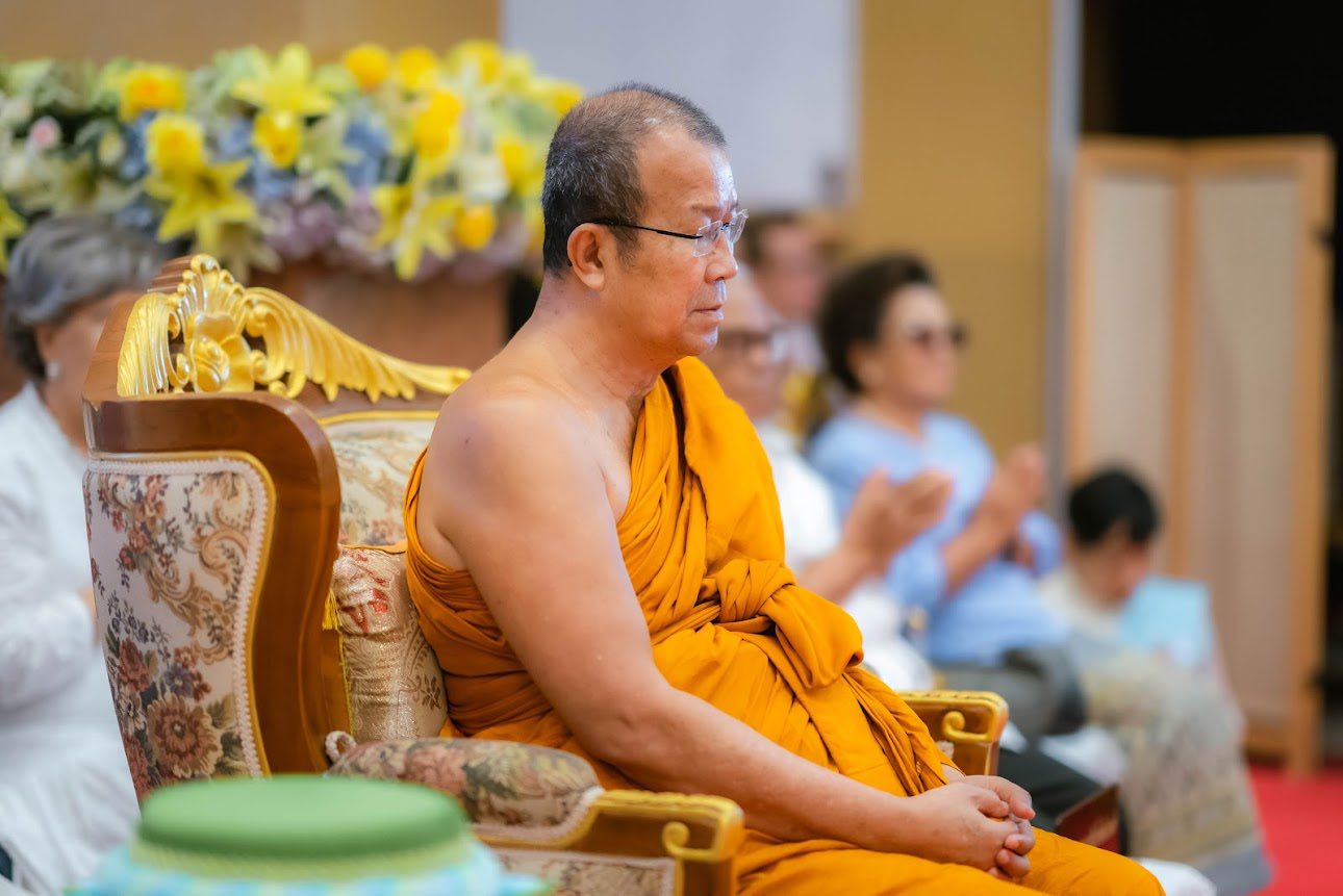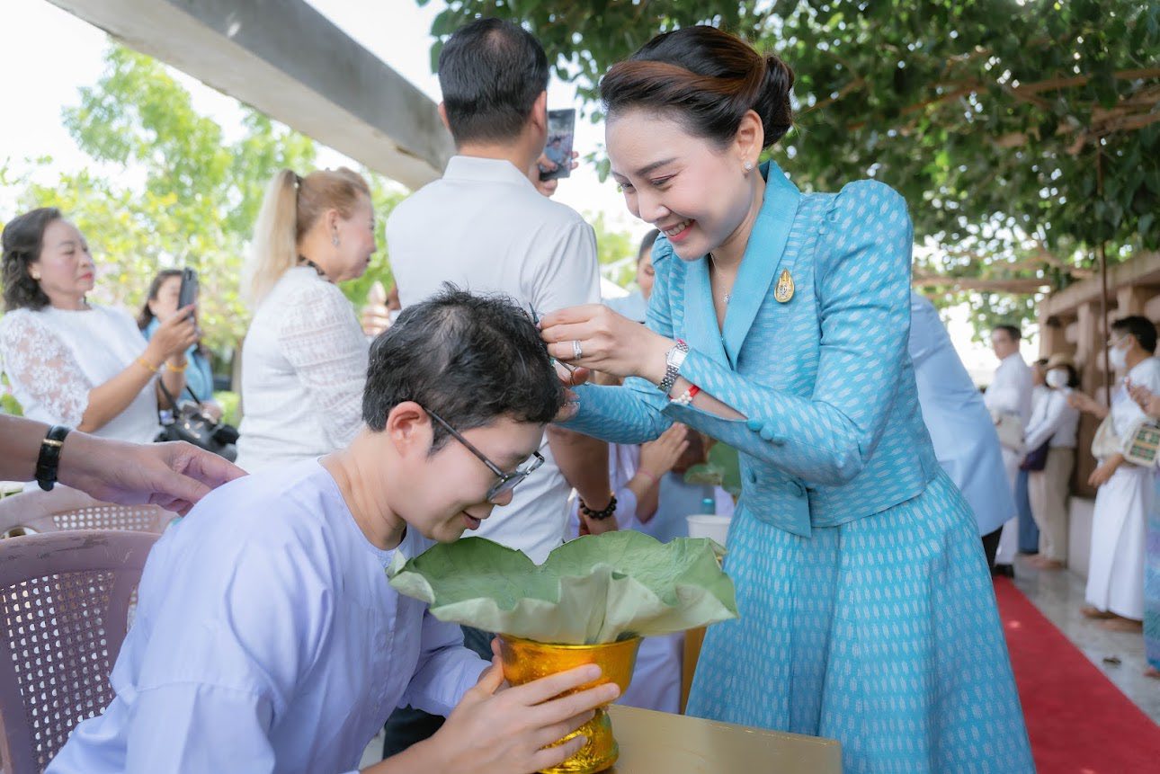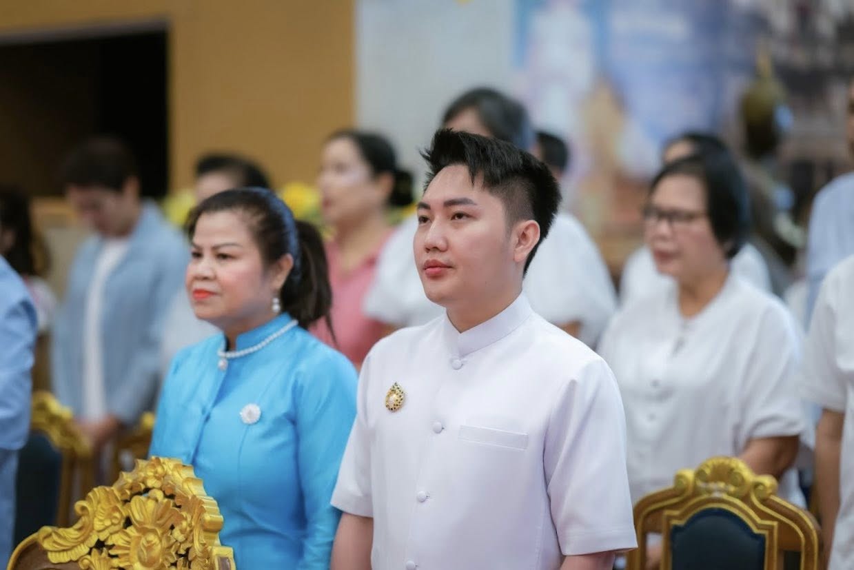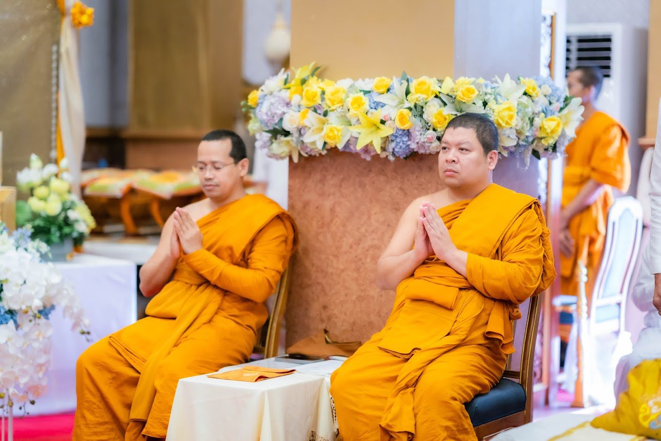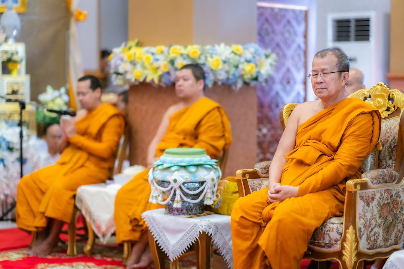 โดยมี ดร.ไพลิน เทียนสุวรรณ ที่ปรึกษารัฐมนตรีว่าการกระทรวงอุตสาหกรรม เป็นประธานฝ่ายฆราวาส คุณธัชพงศ์ วงศ์วัชรภัทร์ ประธานบริหาร ของบริษัท เดอะ วินเนอร์ สตาร์ กล่าวถวายรายงาน พร้อมด้วย พลเอกกนิษฐ์ ชาญปรีชญา อดีตสมาชิกวุฒิสภา ศ.ดร. เจริญ – อาจารย์มารยาท กระบวนรัตน์ คุณปู่แก้ว บุตรชาติ อดีตควานช้างหลวง พระเศวตฉัตร ช้างเผือก หลวงประจำพระองค์ พระบาทสมเด็จ พระเจ้าอยู่หัว รัชกาลที่ ๙ และคณะญาติธรรมจำนวนมากร่วมพิธี อีกทั้งยังได้รับการสนับสนุนทีมจิตอาสาของเสถียรธรรมสถาน ในการประกอบพิธีโกนผมอีกด้วย