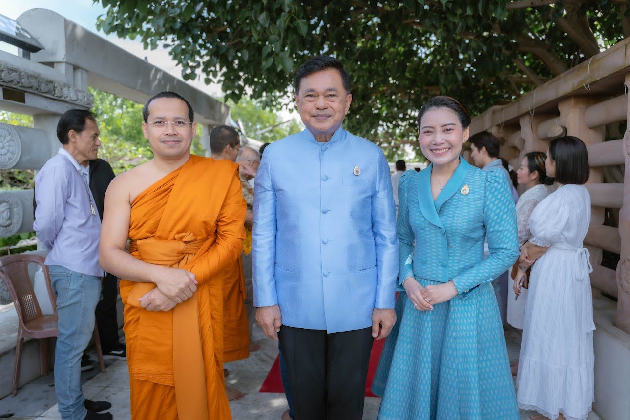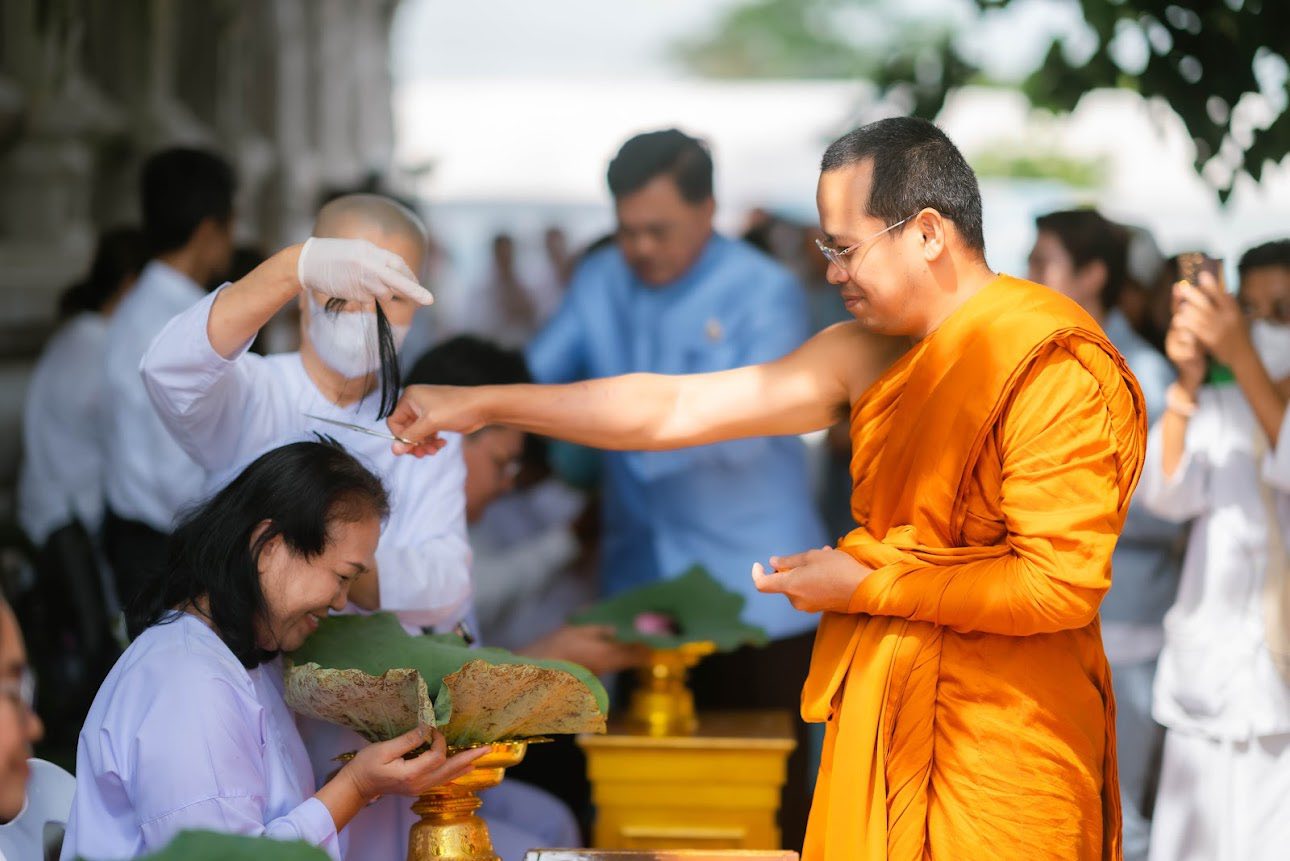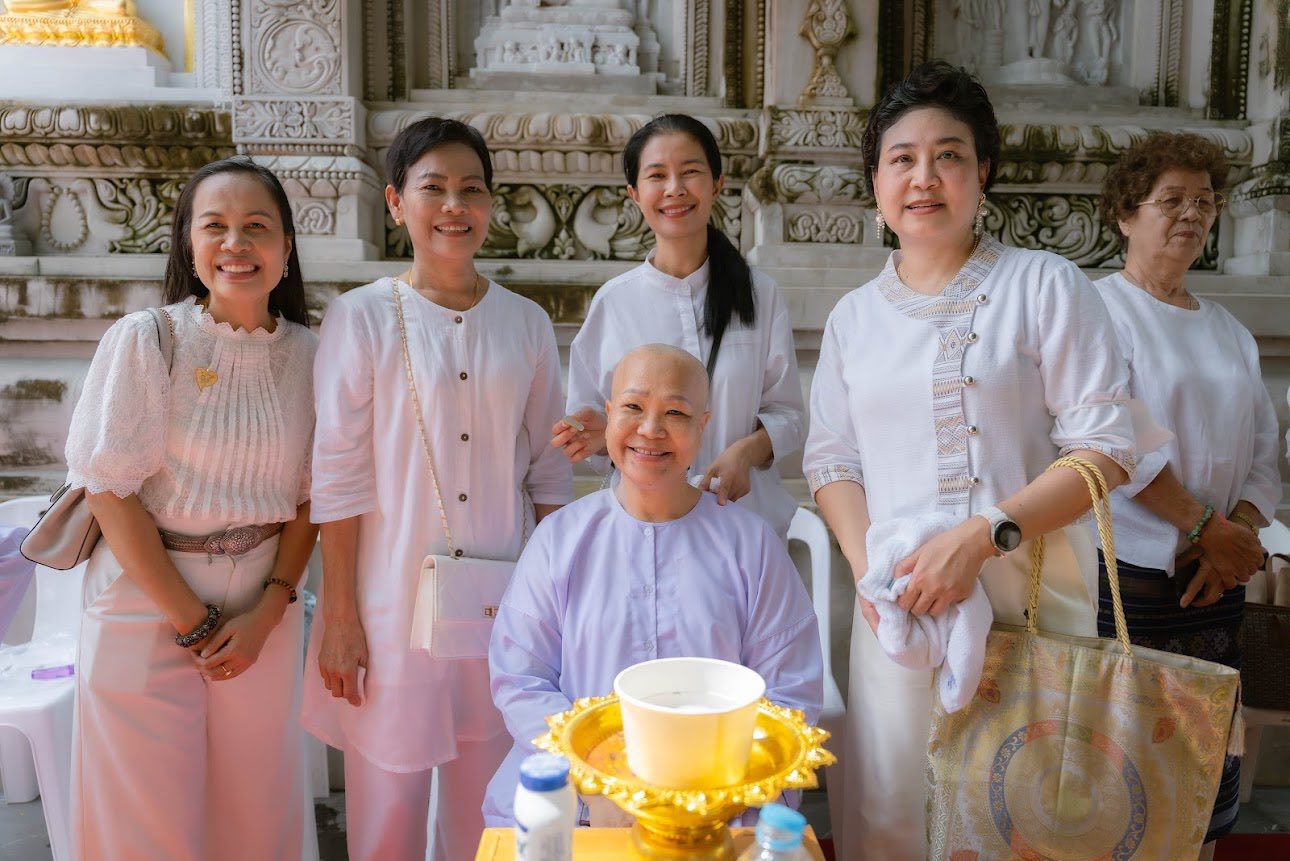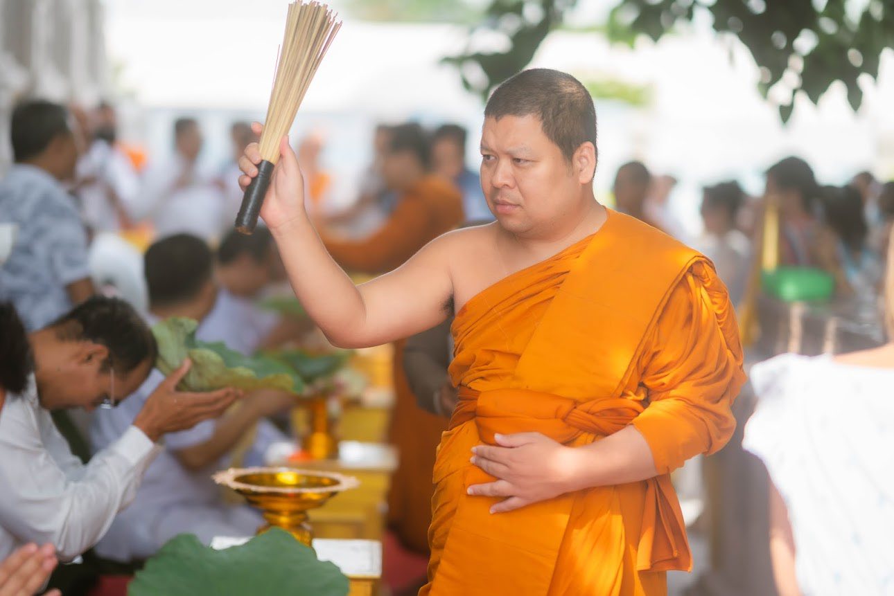 โดยมี ดร.ไพลิน เทียนสุวรรณ ที่ปรึกษารัฐมนตรีว่าการกระทรวงอุตสาหกรรม เป็นประธานฝ่ายฆราวาส คุณธัชพงศ์ วงศ์วัชรภัทร์ ประธานบริหาร ของบริษัท เดอะ วินเนอร์ สตาร์ กล่าวถวายรายงาน พร้อมด้วย พลเอกกนิษฐ์ ชาญปรีชญา อดีตสมาชิกวุฒิสภา ศ.ดร. เจริญ – อาจารย์มารยาท กระบวนรัตน์ คุณปู่แก้ว บุตรชาติ อดีตควานช้างหลวง พระเศวตฉัตร ช้างเผือก หลวงประจำพระองค์ พระบาทสมเด็จ พระเจ้าอยู่หัว รัชกาลที่ ๙ และคณะญาติธรรมจำนวนมากร่วมพิธี อีกทั้งยังได้รับการสนับสนุนทีมจิตอาสาของเสถียรธรรมสถาน ในการประกอบพิธีโกนผมอีกด้วย