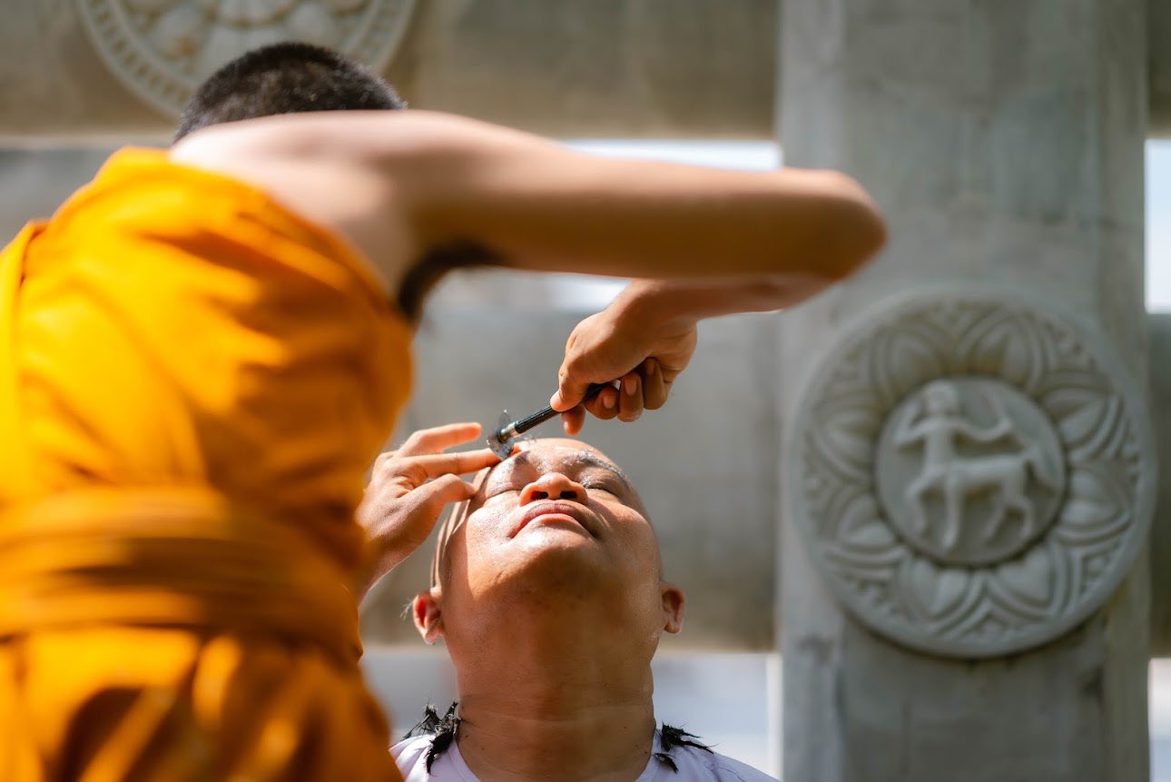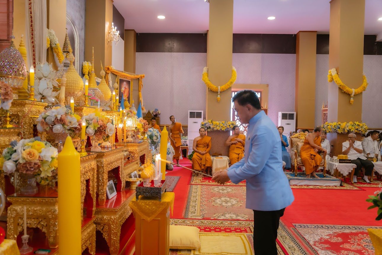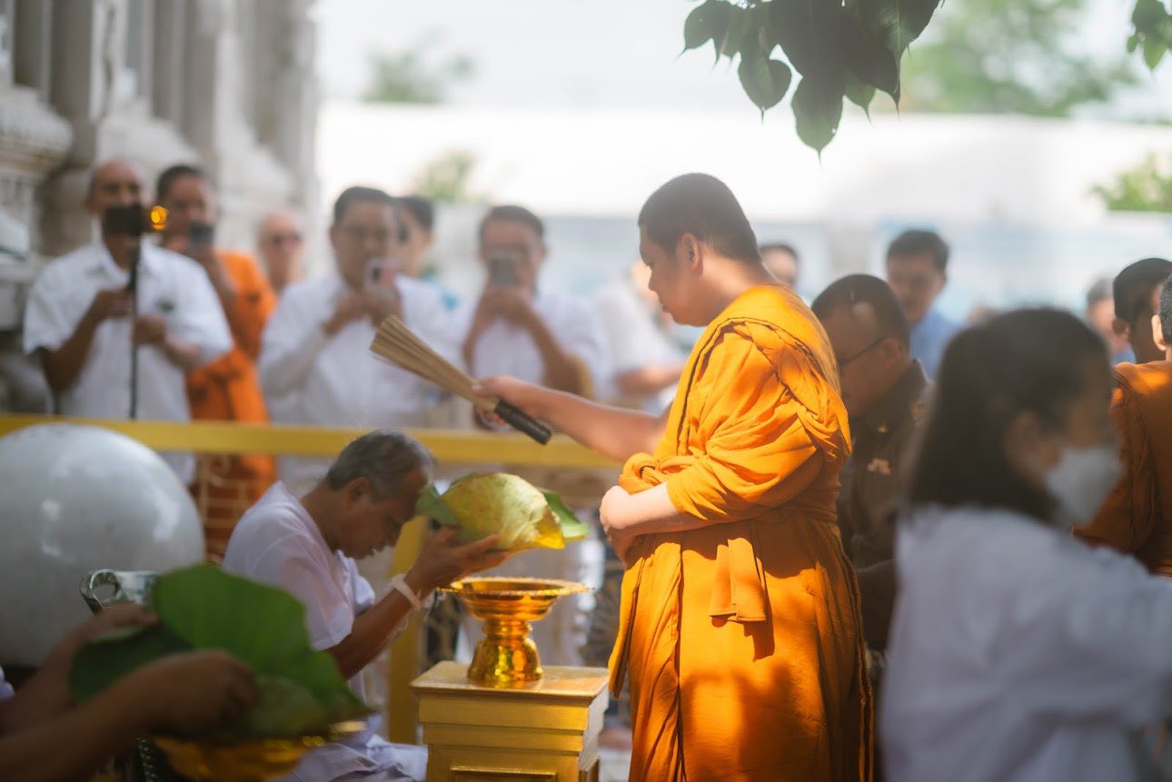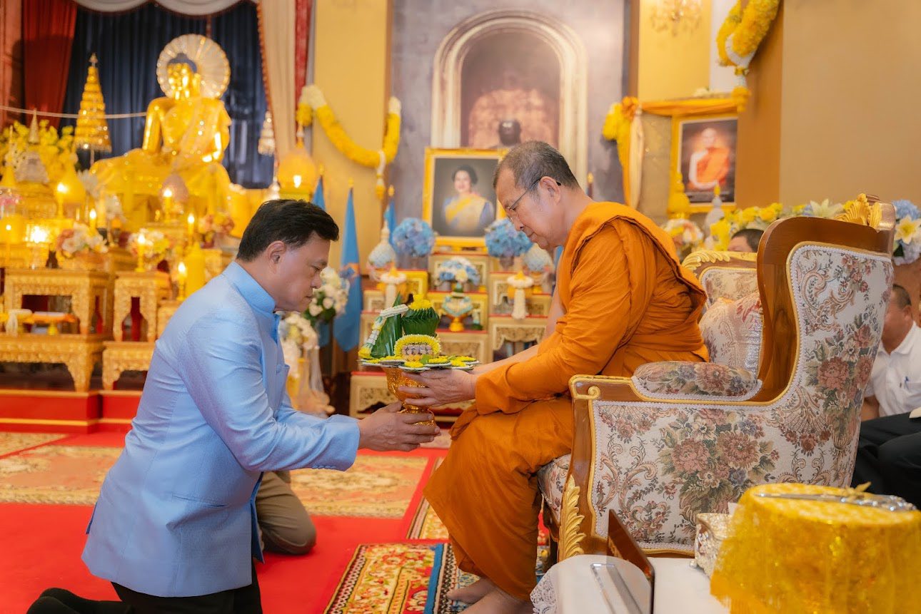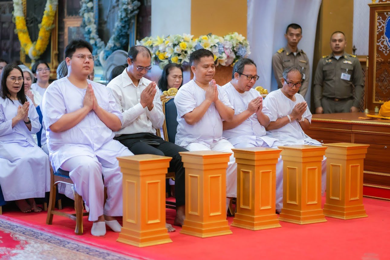 โดยมี ดร.ไพลิน เทียนสุวรรณ ที่ปรึกษารัฐมนตรีว่าการกระทรวงอุตสาหกรรม เป็นประธานฝ่ายฆราวาส คุณธัชพงศ์ วงศ์วัชรภัทร์ ประธานบริหาร ของบริษัท เดอะ วินเนอร์ สตาร์ กล่าวถวายรายงาน พร้อมด้วย พลเอกกนิษฐ์ ชาญปรีชญา อดีตสมาชิกวุฒิสภา ศ.ดร. เจริญ – อาจารย์มารยาท กระบวนรัตน์ คุณปู่แก้ว บุตรชาติ อดีตควานช้างหลวง พระเศวตฉัตร ช้างเผือก หลวงประจำพระองค์ พระบาทสมเด็จ พระเจ้าอยู่หัว รัชกาลที่ ๙ และคณะญาติธรรมจำนวนมากร่วมพิธี อีกทั้งยังได้รับการสนับสนุนทีมจิตอาสาของเสถียรธรรมสถาน ในการประกอบพิธีโกนผมอีกด้วย