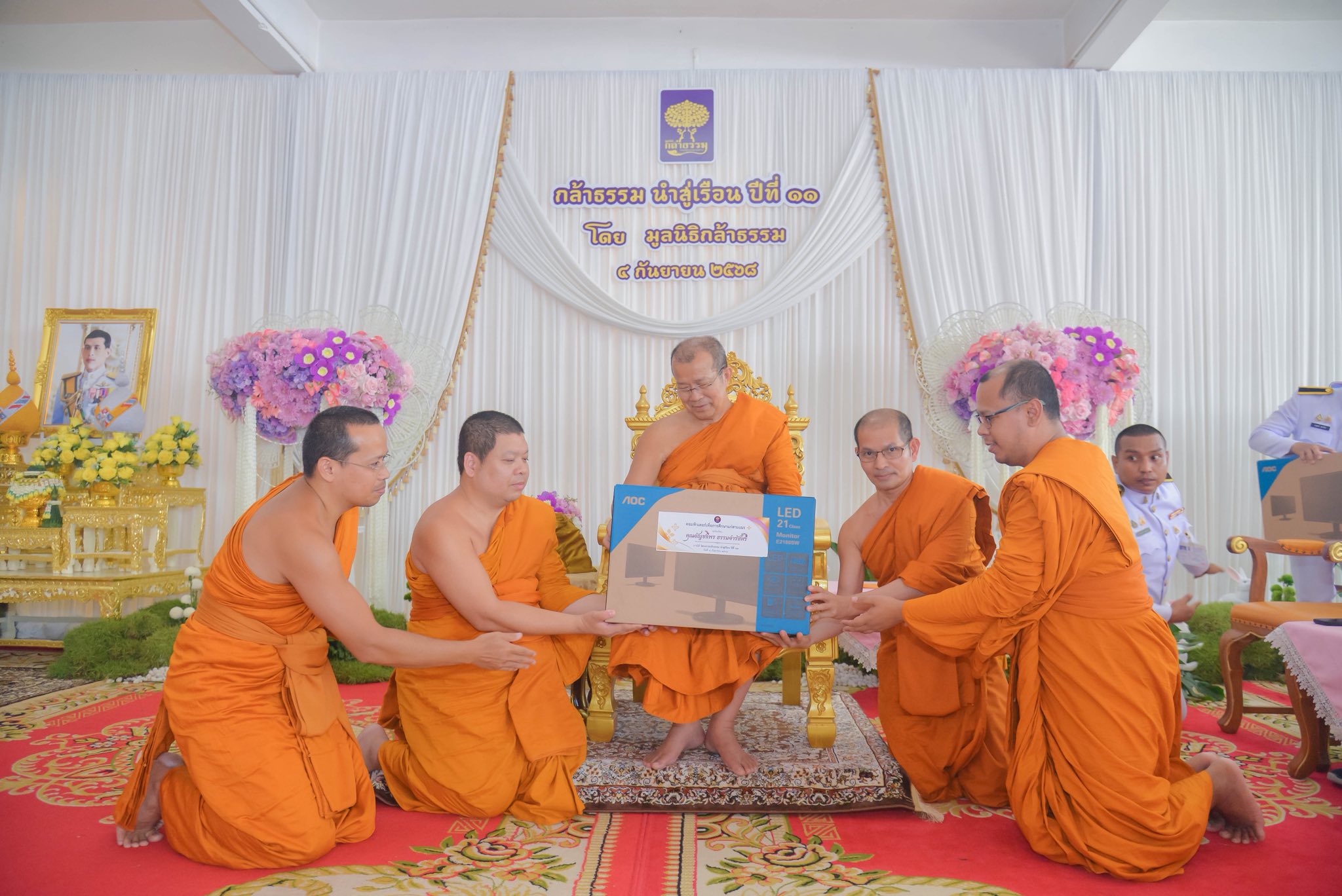 โดยได้รับความเมตตา จากพระเดชพระคุณฯ มอบโล่ให้แก่ผู้อุปถัมภ์มูลนิธิกล้าธรรม มอบตราตั้งคณะกรรมมูลนิธิกล้าธรรม มอบต้นพระศรีมหาโพธิ์และใบประกาศนียบัตร มอบป้ายปัจจัย โครงการกล้าธรรม นำสู่เรือน ปีที่ ๑๑ แก่สำนักเรียน มอบปัจจัย โครงการทำบุญวัดละบาท มอบคอมพิวเตอร์ โทรทัศน์ แก่โรงเรียนพระปริยัติธรรมสามัญ วัดสระเรียง และมอบทุนการศึกษาแก่สามเณร จำนวน ๑๐ ทุน