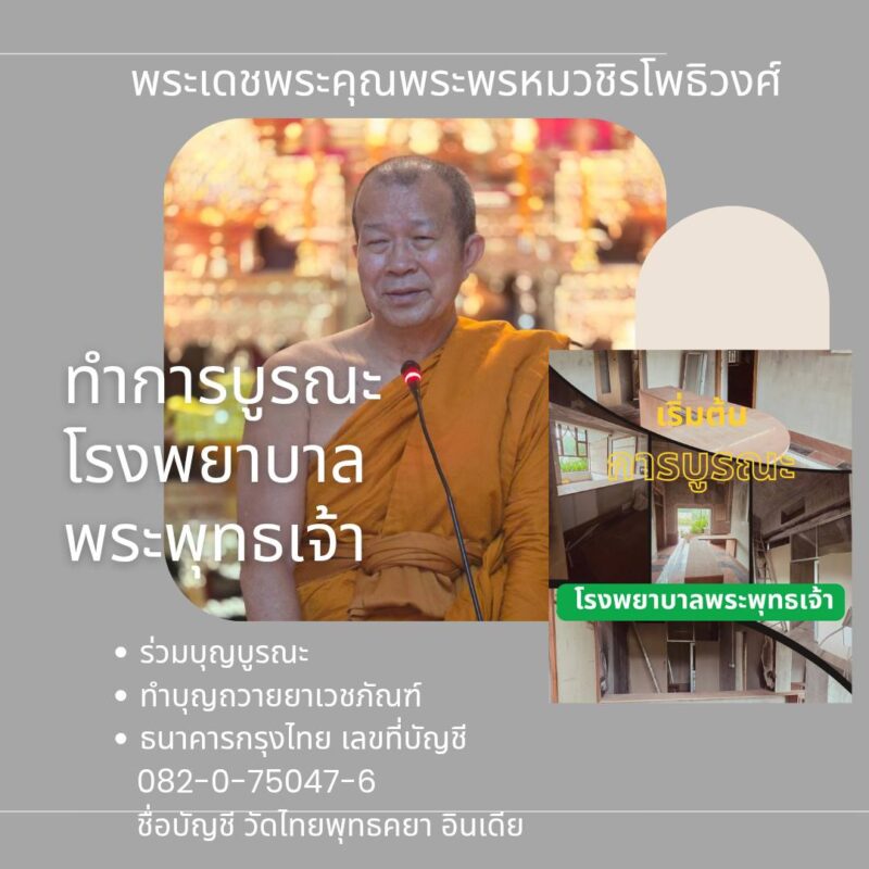 พระเดชพระคุณฯ พระพรหมวชิรโพธิวงศ์ เจ้าอาวาสวัดไทยพุทธคยา หัวหน้าพระธรรมทูต สายประเทศอินเดีย ปรารภว่าให้เร่งบูรณะโรงพยาบาลพระพุทธเจ้า เพื่อให้ทันงาน วันที่ ๑๑ ตุลาคม ๒๕๖๘ ซึ่งโครงการออกหน่วยทันตกรรมพระราชทานจะเดินทางมาทำการรักษาสุขภาพฟันให้พระสงฆ์ แม่ชี จิตอาสา รวมถึงคนไทยในพุทธคยา