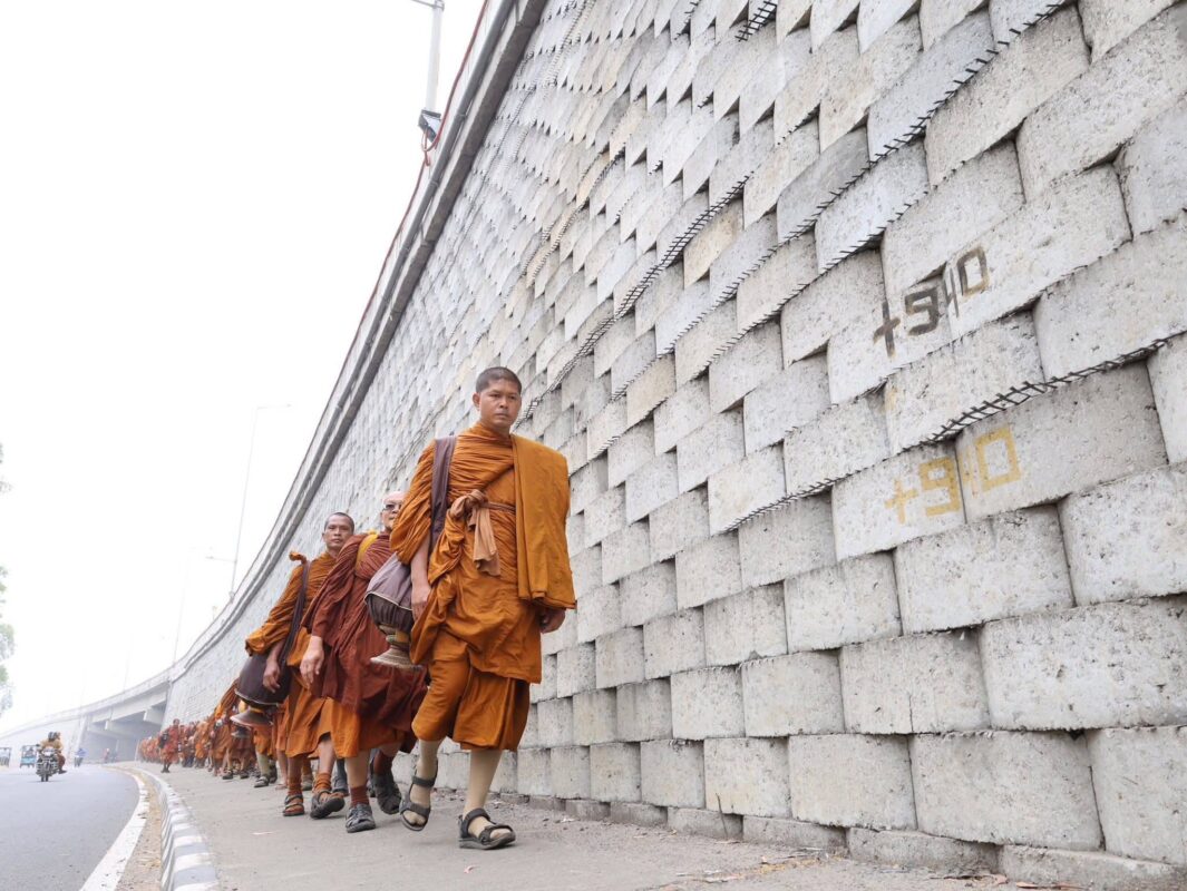 พระพรหมวชิรโพธิวงศ์ เจ้าอาวาสวัดไทยพุทธคยา หัวหน้าพระธรรมทูตสายประเทศอินเดีย – เนปาล อนุโมทนาให้กำลังใจพระสงฆ์เดินธุดงค์ธรรมยาตราในประเทศอินเดีย – เนปาล