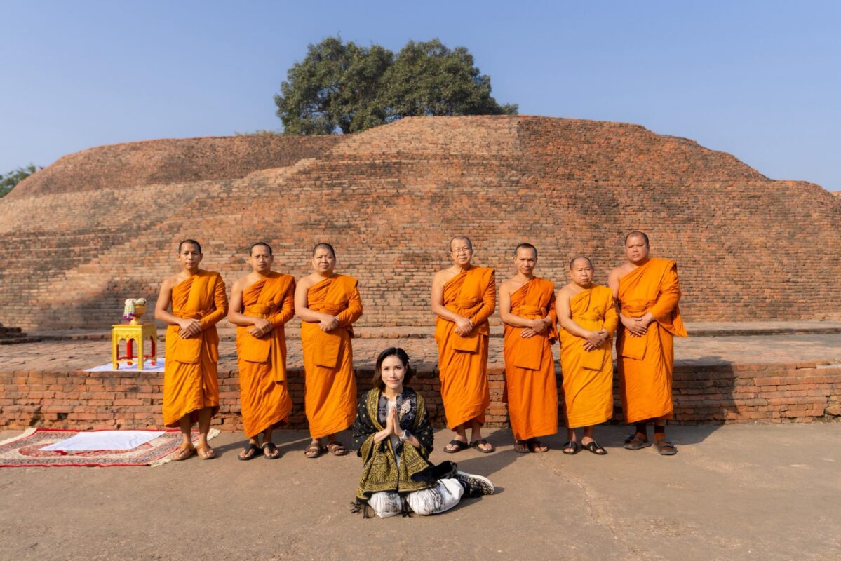 พระพรหมวชิรโพธิวงศ์ เจ้าอาวาสวัดไทยพุทธคยา หัวหน้าพระธรรมทูต สายประเทศอินเดีย – เนปาล เมตตานำ พลโทหญิง เจ้าคุณพระสินีนาถ พิลาสกัลยาณี กราบสักการะวัดพระเวฬุวันมหาวิหาร เมืองราชคฤห์