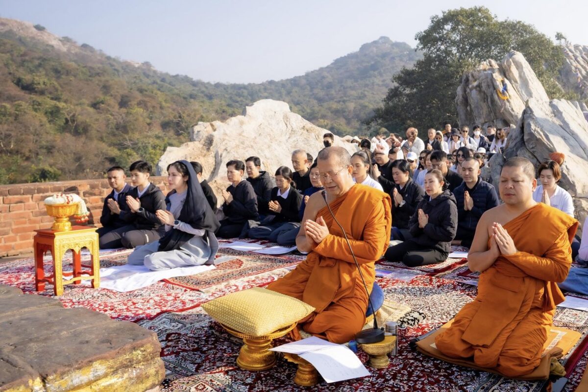 พระพรหมวชิรโพธิวงศ์ เจ้าอาวาสวัดไทยพุทธคยา หัวหน้าพระธรรมทูต สายประเทศอินเดีย – เนปาล เมตตานำ พลโทหญิง เจ้าคุณพระสินีนาถ พิลาสกัลยาณี กราบสักการะพระมูลคันธกุฎีบนเขาคิชฌกูฎ สถานที่ประทับสำคัญของพระพุทธเจ้า ณ ยอดเขาคิชฌกูฎ เมืองราชคฤห์