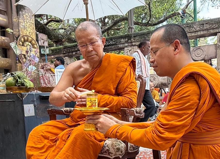 พิธีตักบาตรเทโวโรหนะ เนื่องในวันออกพรรษา ณ พระมหาเจดีย์พุทธคยา สถานที่ตรัสรู้ขององค์สมเด็จพระสัมมาสัมพุทธเจ้า ประเทศอินเดีย ประจำปี ๒๕๖๘