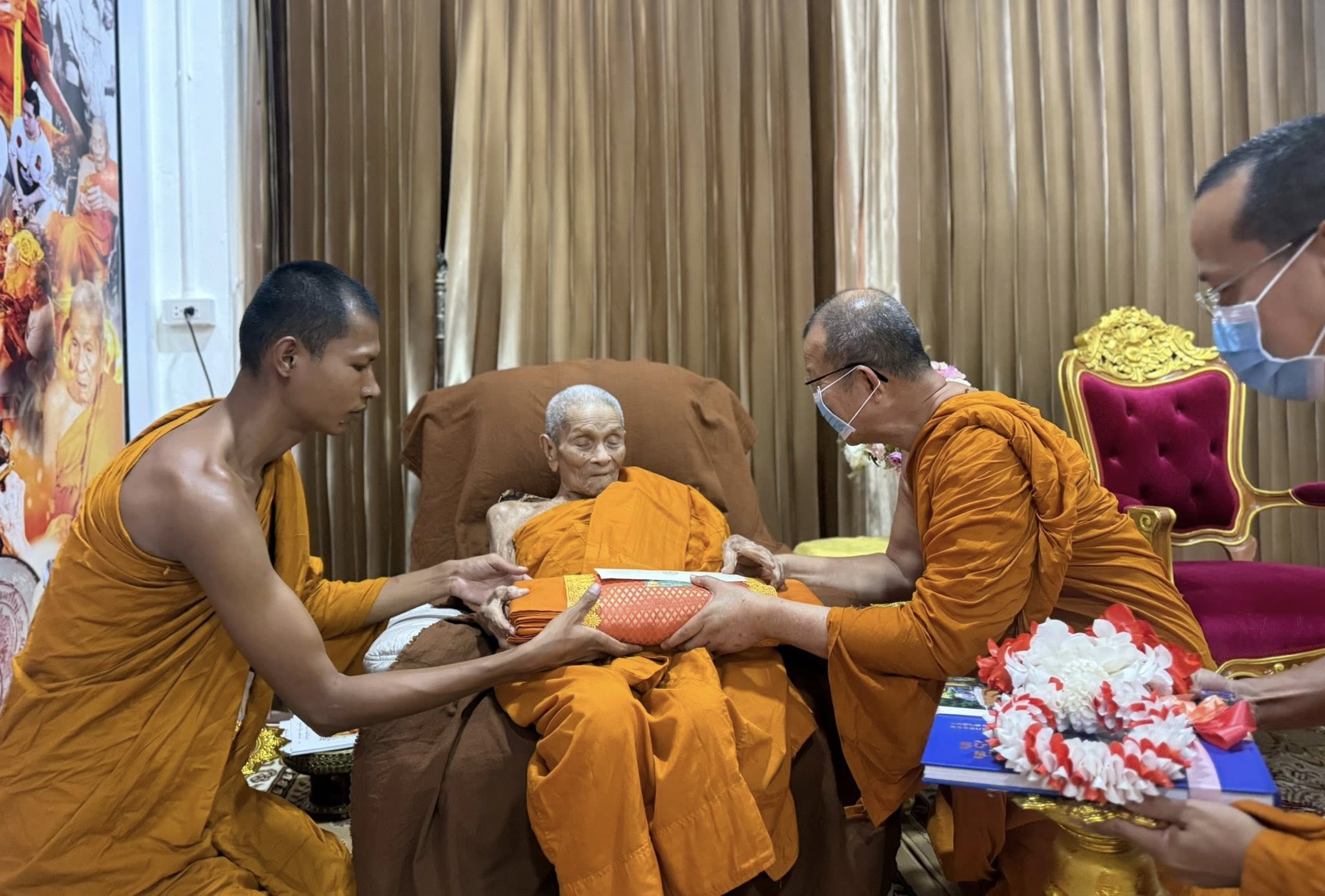 พระพรหมวชิรโพธิวงศ์ เจ้าอาวาสวัดไทยพุทธคยา หัวหน้าพระธรรมทูต สายประเทศอินเดีย เข้ากราบถวายสักการะ พระราชมงคลวชิรปัญญา (หลวงปู่อิ่ม ปญฺญาวุโธ) อายุ ๑๐๘ ปี...